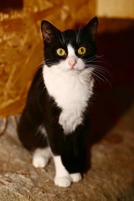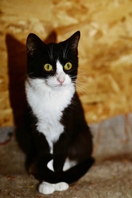 Гуля, несмотря на большое количество котеек на 1 кв. метр площади в кошачьем доме, выглядит очень ухоженно и изящно. Черная шерстка блестит и отливает на солнце, делая ее привлекательной и нарядной. И на контрасте необычайно ярко выглядят белая манишка и желтые глаза. Считается, что кошки окраса биколор отличаются спокойствием и покладистостью. Они послушны, чувствительны, общительны, прекрасно чувствуют настроение людей, любят ласку. В кошачьем приюте ей этого очень не хватает.