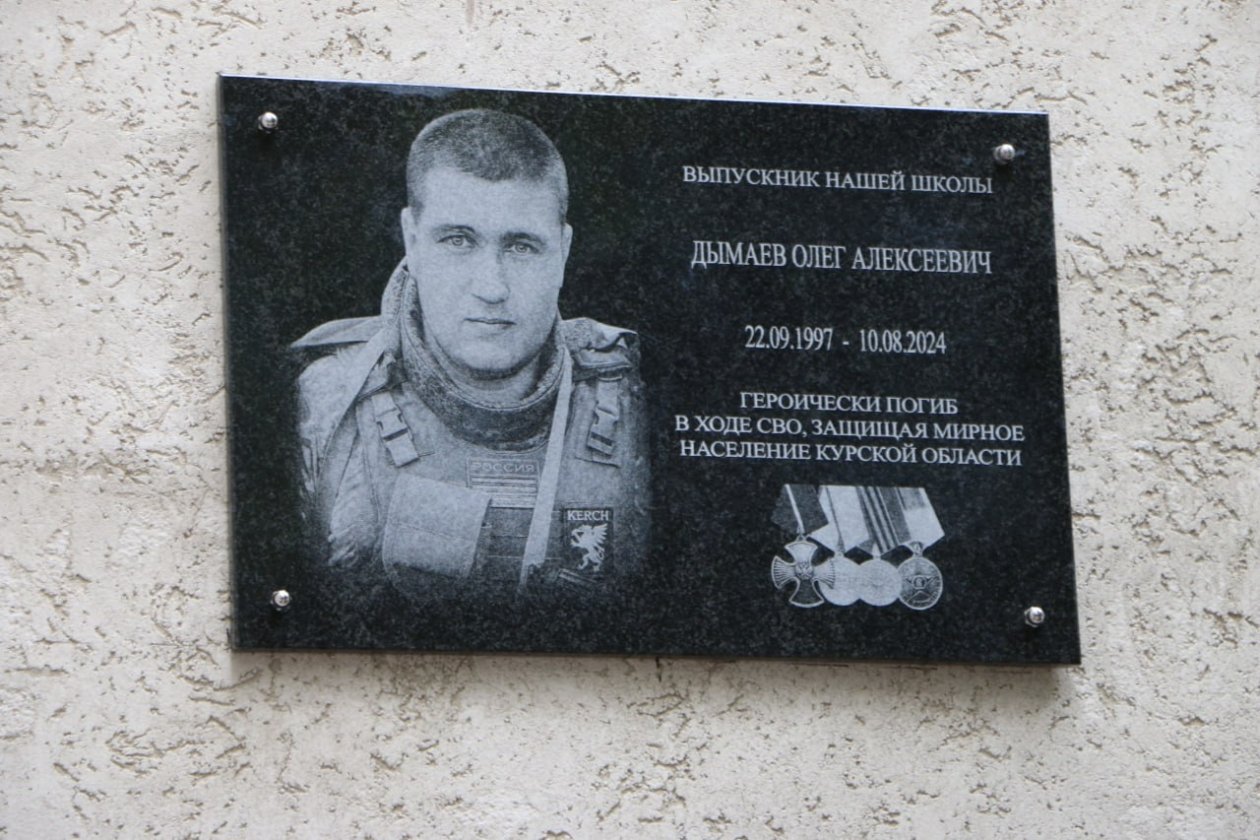 SevastopolMedia, 27 октября. На фасаде школы № 15 в Керчи открыли мемориальную доску участнику специальной военной операции Олегу Дымаеву, сообщал глава администрации города Олег Каторгин. Жизнь воина прервалась при защите Курской области.
