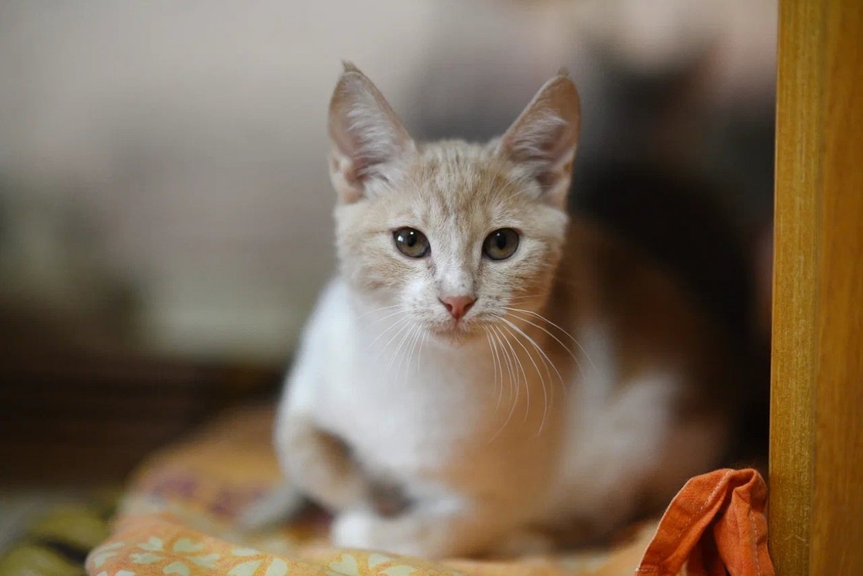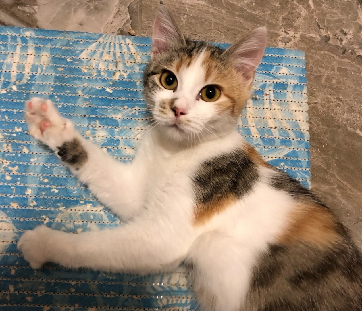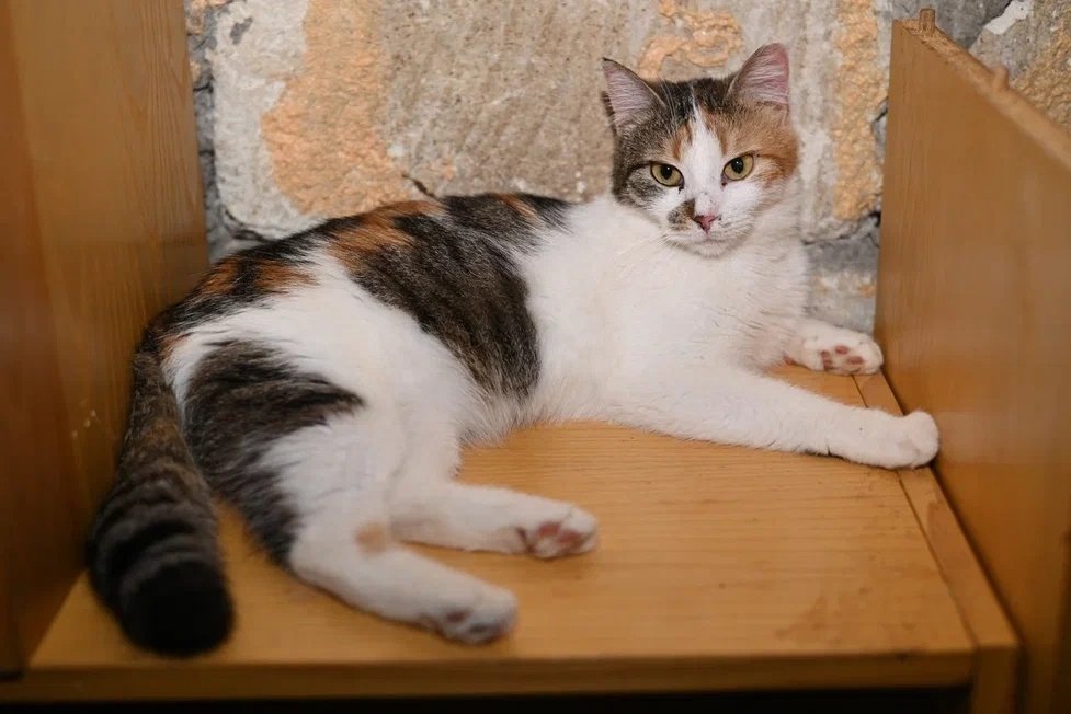 Ищет семью и ласковая Капитошка в "ситцевом" наряде. Так называют окрас, когда яркие пятнышки шёрстки создают красивую мозаику. Кошечка, несмотря на юный возраст, очень тактична, знает, когда лучше помолчать, а когда подойти и спеть тихую ненавязчивую песенку.