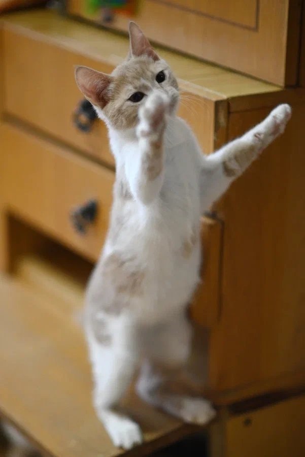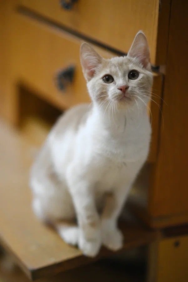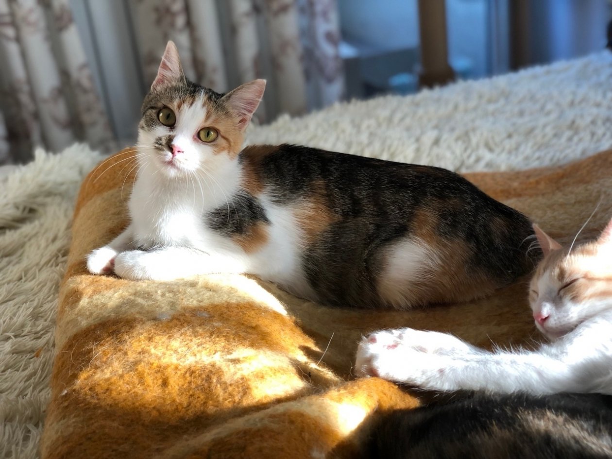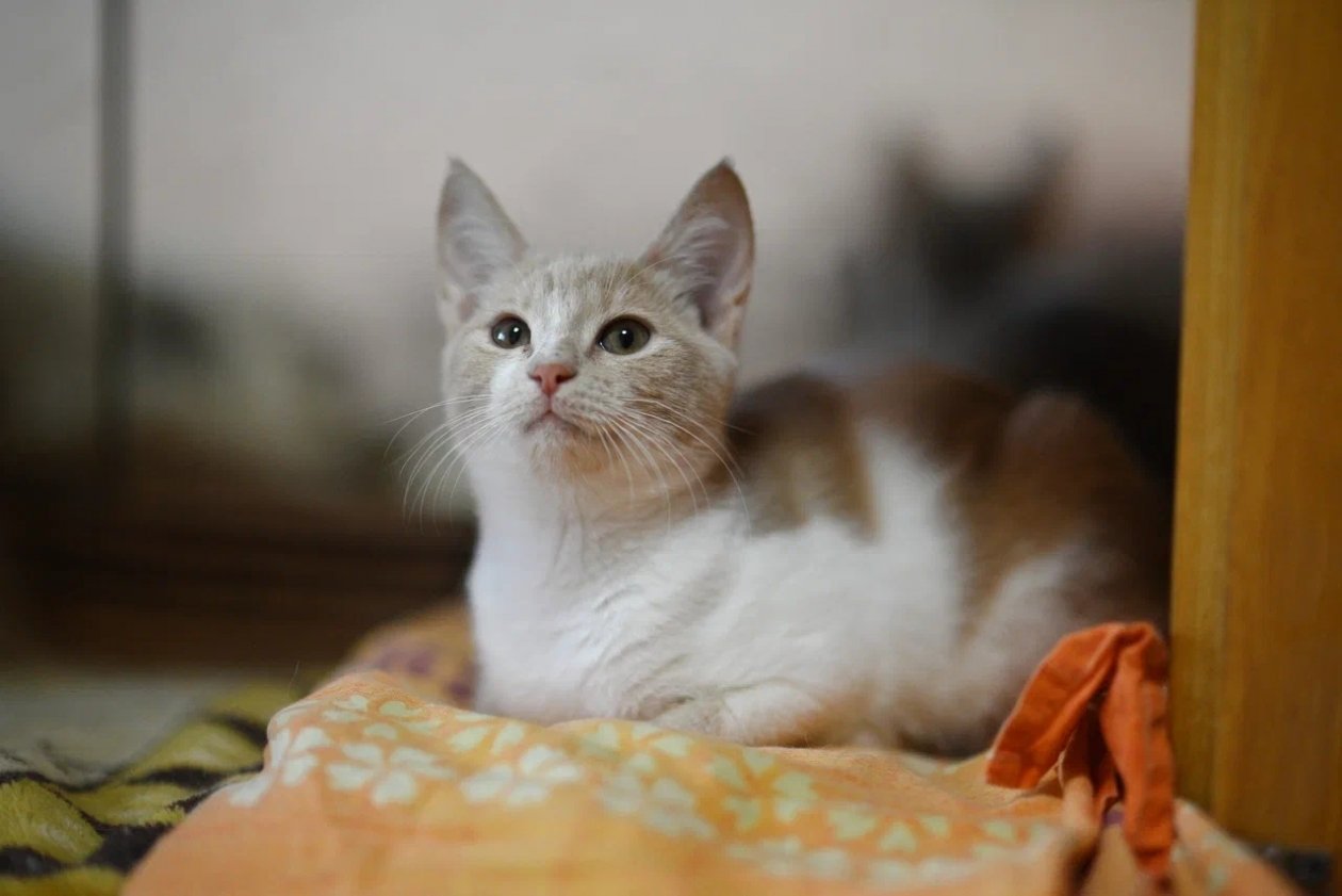 Ищет семью и ласковая Капитошка в "ситцевом" наряде. Так называют окрас, когда яркие пятнышки шёрстки создают красивую мозаику. Кошечка, несмотря на юный возраст, очень тактична, знает, когда лучше помолчать, а когда подойти и спеть тихую ненавязчивую песенку.