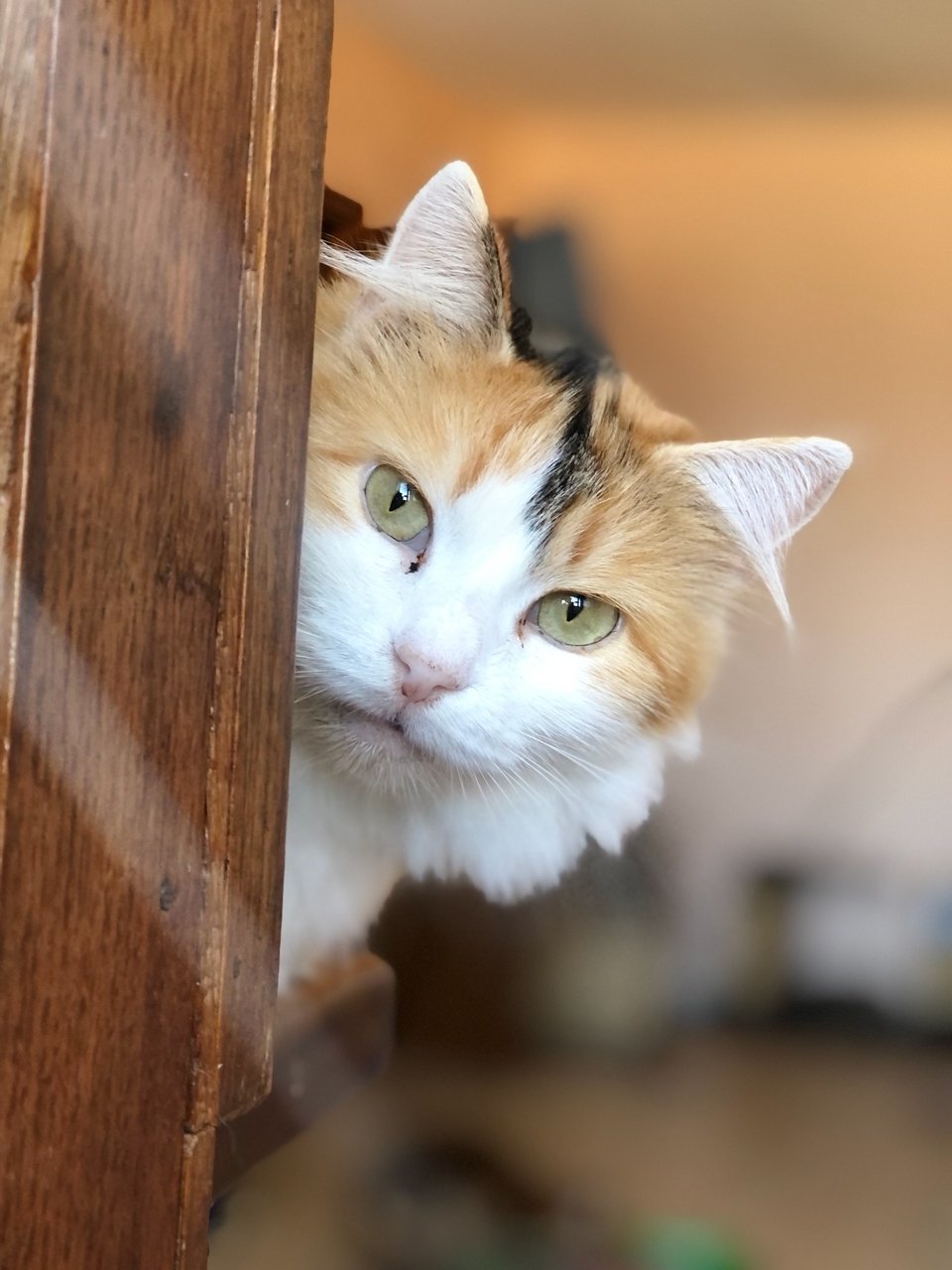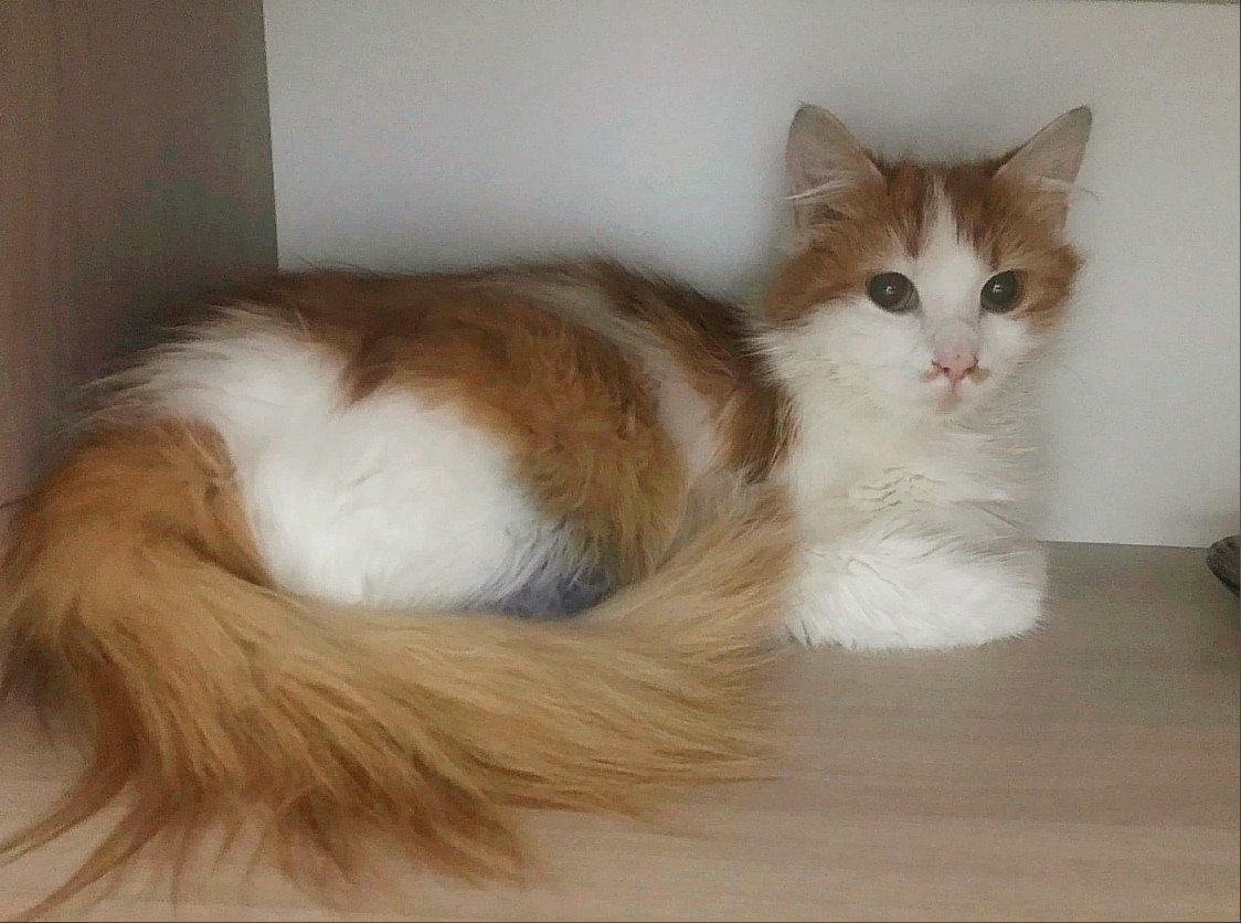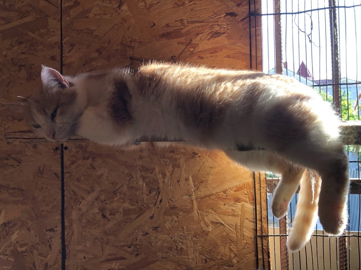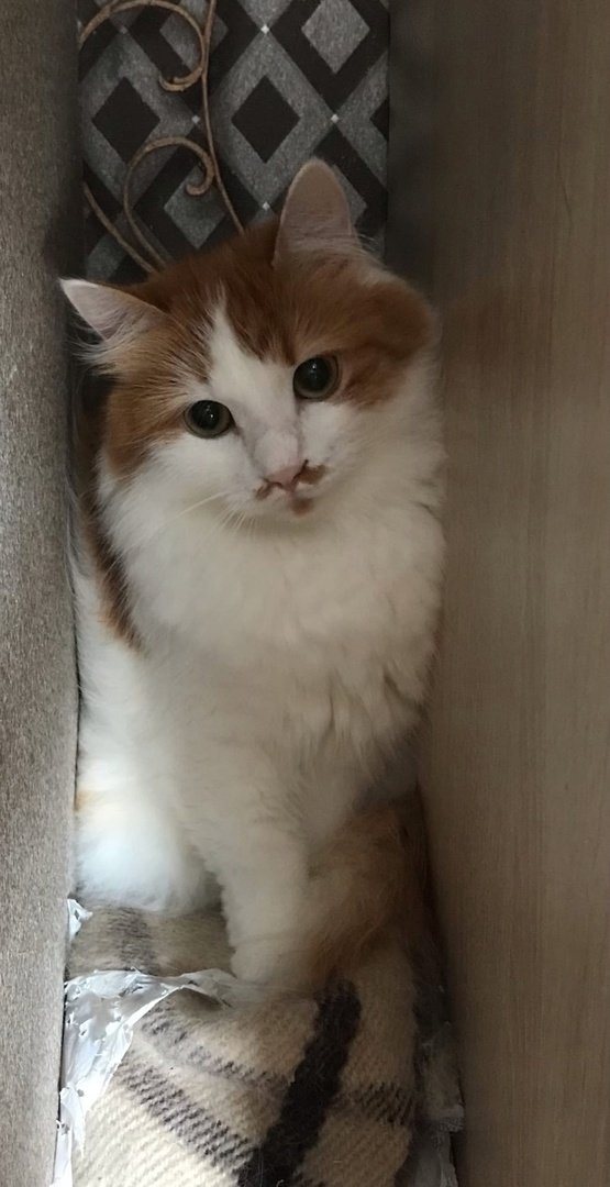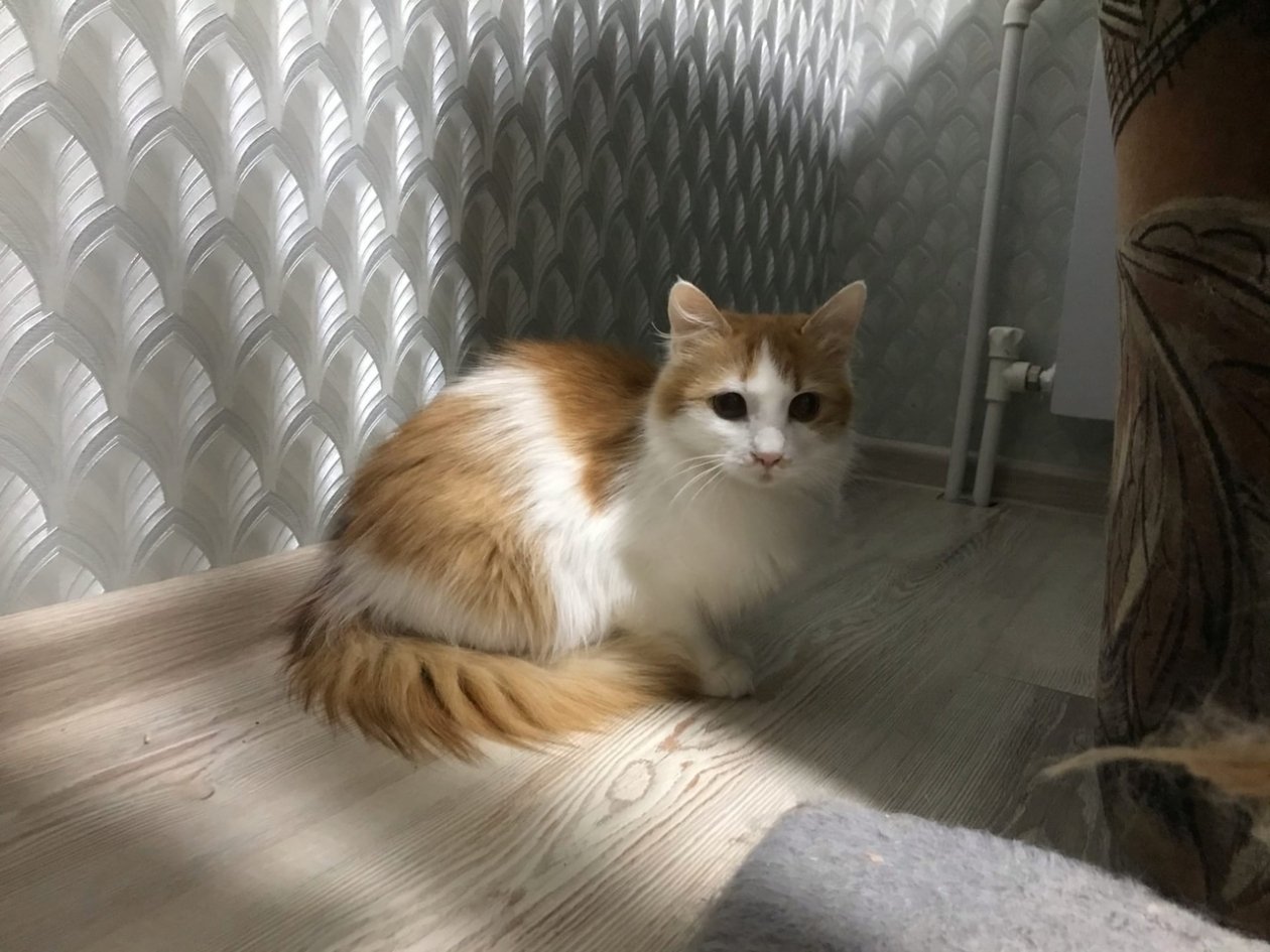 Роскошная бело-золотая леди — это Ромашка. Красавица, умница и при этом очень воспитанная. К лоточку приучена, живет на квартирной передержке, правила хорошего тона знает, умеет, практикует. По характеру — скромняжка, но дома в любви и заботе расцветет.