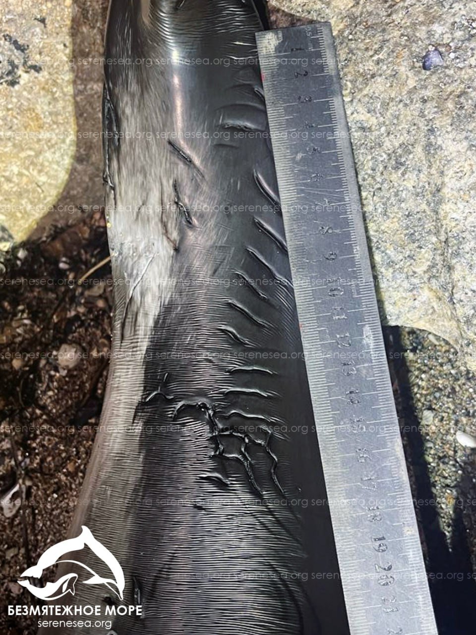 У находки же следы говорили о нападении именно афалин. Возможно, она выбрасывалась на берег еще живой, а ее худоба подтверждает ослабленное состояние.