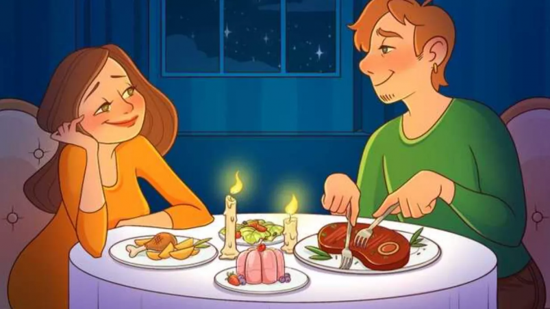 Сможете ли вы обнаружить ошибку на изображении, где запечатлена романтическая встреча влюбленной пары в ресторане?