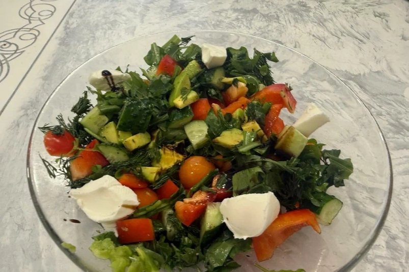 Перед самой подачей салат можно посыпать тертым твердым сыром или положить кусочки мягкого (например феты или сливочного). Так он будет еще более сытным.