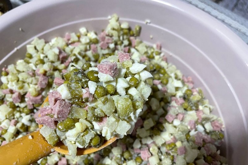 Такой майонез идеален для классического "Оливье", винегрета, сельди под шубой.