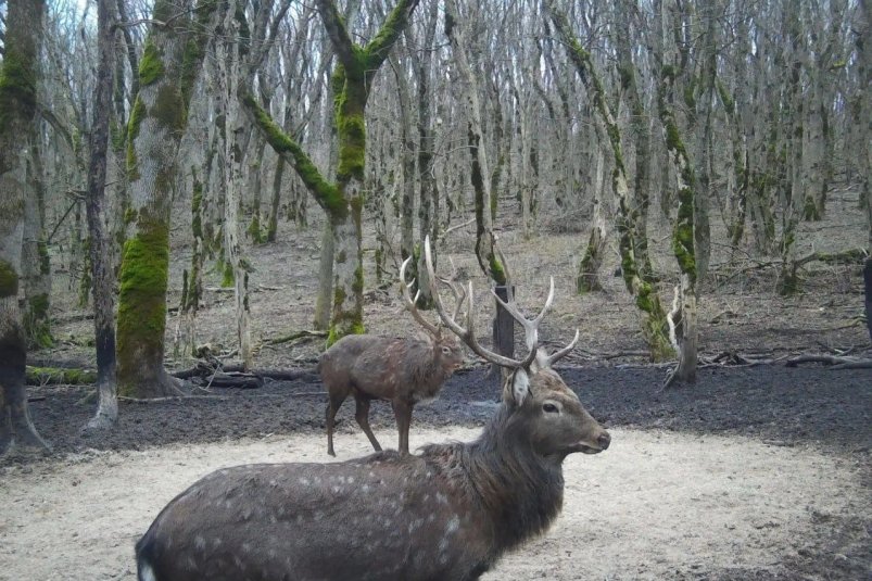 Пятнистые олени попали в объектив фотоловушки на Ставрополье. Фото: Минприроды Ставрополья