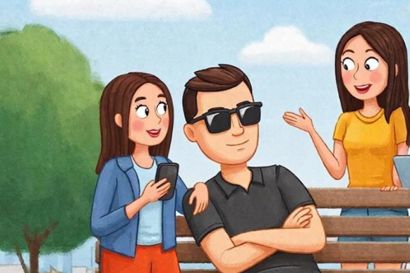 Ответ: когда мужчина взял угощение, протянутое ему, девушки поняли, что он не слепой. Ведь конфеты ему предложили молча. Значит, он врет, и ему есть что скрывать.