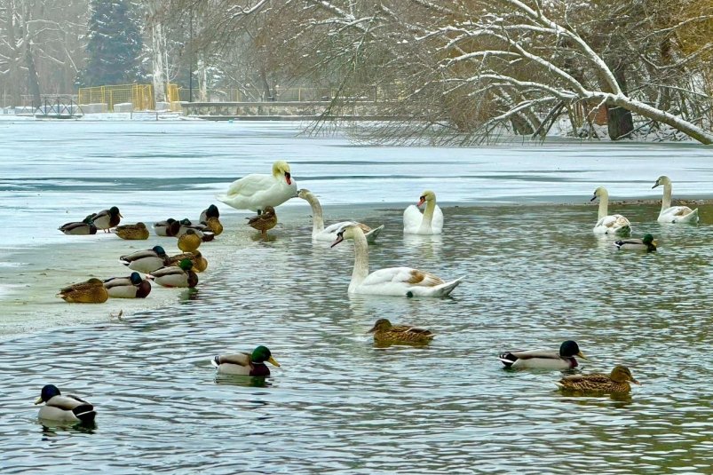 SevastopolMedia, 22 января. Водоплавающие птицы в парке Гагарина Симферополя отлично переносят зимние морозы, несмотря на частично замерзший пруд, рассказали в МБУК "Парки столицы". Утки и лебеди чувствуют себя комфортно, поскольку водоем не покрывается льдом полностью — они продолжают добывать корм.