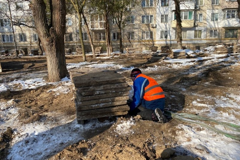 Сейчас на объекте демонтируют старое покрытие. Хотя погода сложная, но строители выходят каждый день. Планируют поменять плитку и бордюры, поставить скамейки, урны и фонари.