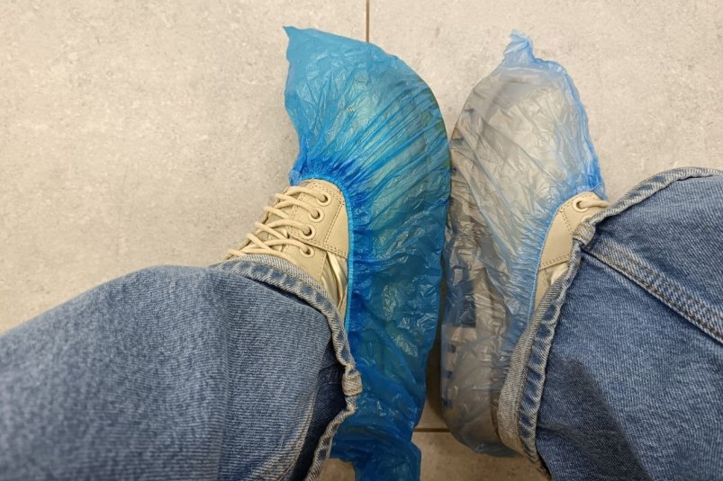 После нанесения жирного крема на стопы, чтобы не пачкать носки и постельное белье, можно надеть бахилы. Они и усилят действие крема, и защитят от жирных пятен вещи. Если нет шапочки для окрашивания волос или нанесения маски, бахила заменит и ее.