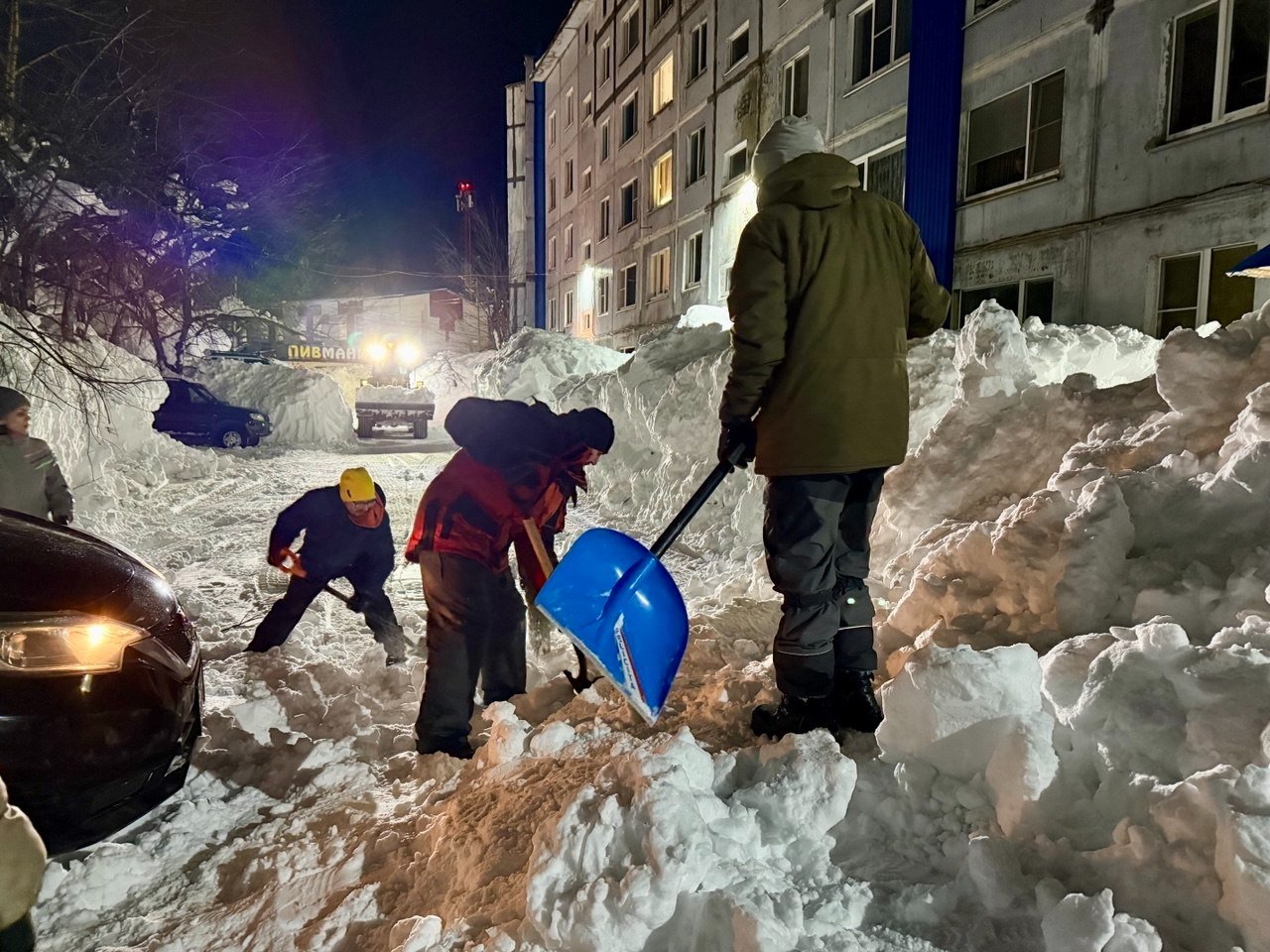 Тут уж выбирать не приходится — если кто-то готов чистить в это время, нужно одеваться потеплее, брать все лопаты и идти помогать.