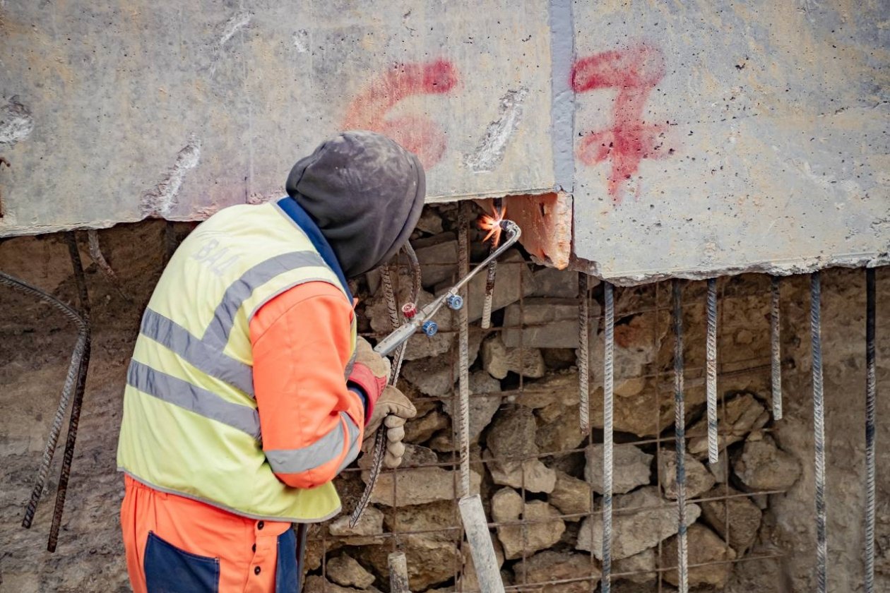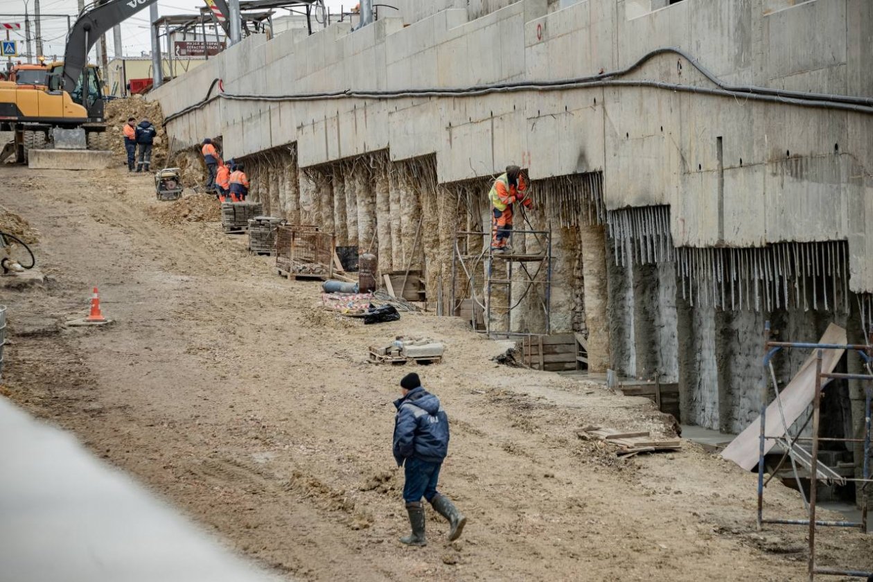 "Строительная готовность подпорных стен на улице Адмирала Октябрьского — 70%. Сложнейший этап с обустройством 213 буронабивных и 50 анкерных свай позади — "скелет" новых подпорных стен полностью готов", — написал Михаил Развожаев в своем телеграм-канале.