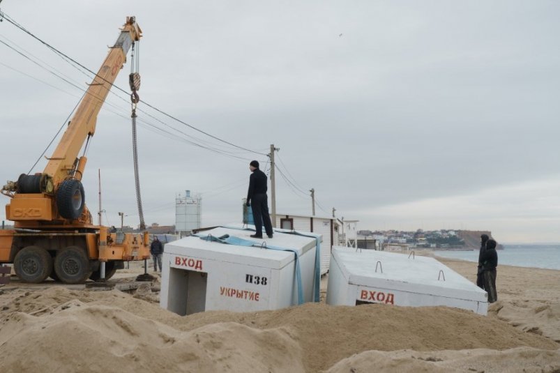 Сейчас на пляже в Орловке установлены восемь укрытий. Принято решение отодвинуть их дальше от линии прибоя, чтобы во время будущих штормов волны не могли до них дотянуться.