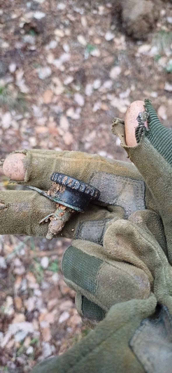"При раскопе мы обнаружили, что это перекрытая рельсой землянка НП артиллерии 386 стрелковой дивизии. Были найдены газеты за 12 и 3 июня 1942 года. В НП было прямое попадание тяжелого снаряда, при проведении работ обнаружены 2 радиостанции, полевой телефон, 4 компаса, 3 бинокля, различные лампы, провода, личные вещи, знак ГТО 2 степени, линейки артиллерийские", — перечислили поисковики.