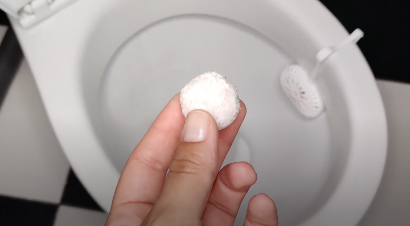 Высохшие чистящие шарики достаточно поместить в специальный подвесной блок для унитаза (диспенсер). При каждом смыве они будут постепенно растворяться, мягко очищая поверхность.