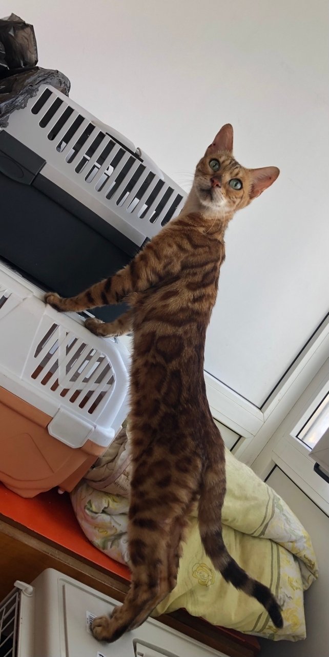Чиара — кошечка невероятной красоты! Характер королевский — за ласками приходит, когда ее величество изволит, на ручках сидеть не любит. Зато одно ее присутствие принесет в дом действительно царскую атмосферу — не зря в ее роду были бенгалы. Такие кошки должны быть домашними любицами, а не жить в прайде.