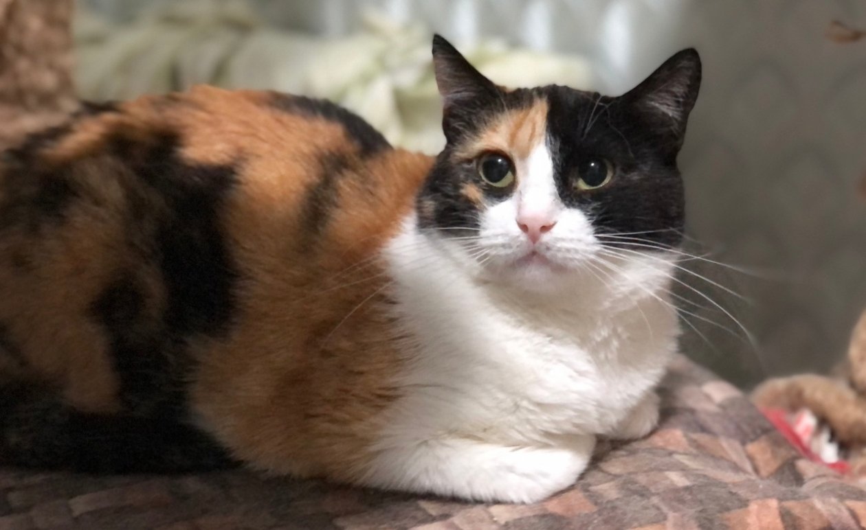 Триша прежде, чем попасть к волонтерам, немало пережила. Малышку нашли худенькой, с разрывом диафрагмы — ее явно кто-то ударил. Прооперировали, выходили получилась кругленькая, мягенькая, уютная кошечка. Триша — ненавязчивая скромняга по характеру, предпочитает вести наблюдение из своей лежаночки. Но дома, конечно, будет приходить и мурлыкать, греть хозяев. Нужно только время на привыкание.