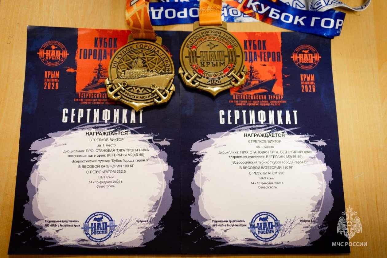 "Рекорд России среди мастеров он установил на Всероссийском турнире по силовым видам спорта "Кубок Города-Героя VI"* Национальной ассоциации пауэрлифтинга. Также первое место Виктор Стрелков завоевал в дисциплине "Становая тяга без экипировки" с результатом 220 кг", — говорится в пресс-релизе.