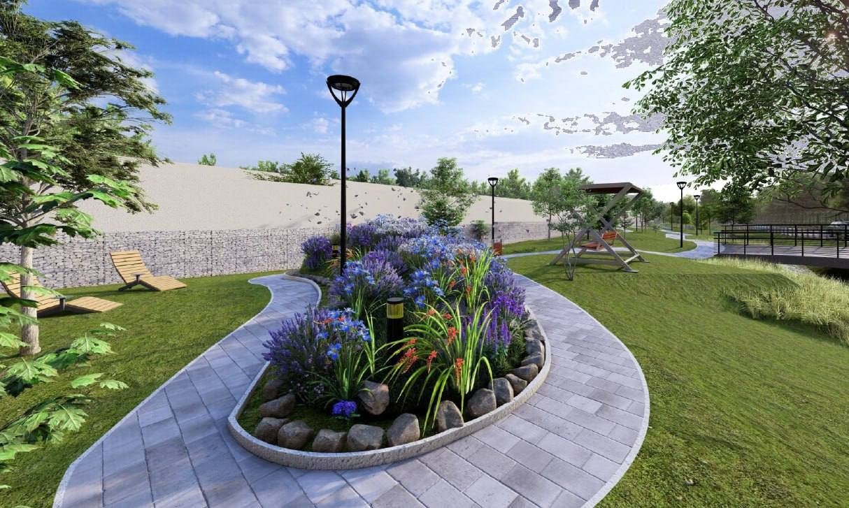 Визуализации будущего пространства обещают уютный, зелёный и современный уголок для отдыха. Пока есть предварительный эскиз, финальный облик, материалы и оснащение согласуют по локальным сметам.