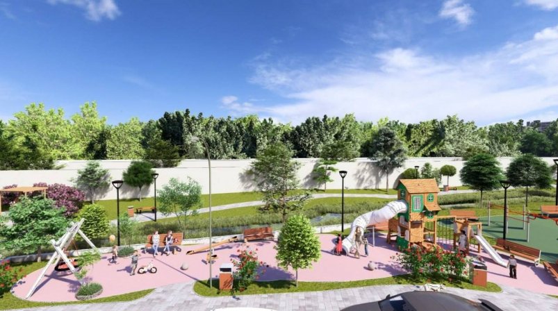 В планах — прокладка асфальтового проезда и плиточного покрытия, монтаж скамеек с урнами, создание детской и спортивной площадок, а также установка систем внешнего освещения и видеонаблюдения.
