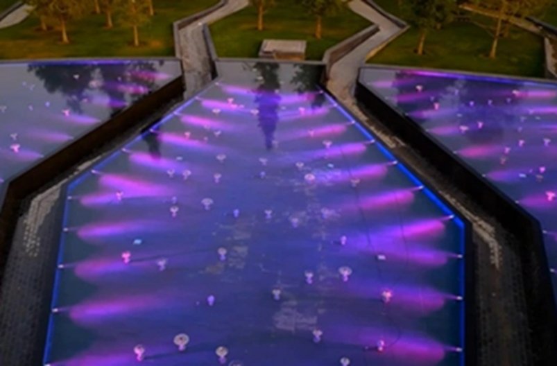 Находится озеро сразу за каньоном, в так называемом "Парке облаков" — новой очереди знаменитого общественного пространства. Это не просто декоративный водоем, а сложный арт-объект, в котором авторы соединили водную стихию, световые решения и современную архитектурную мысль.