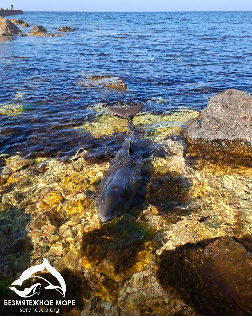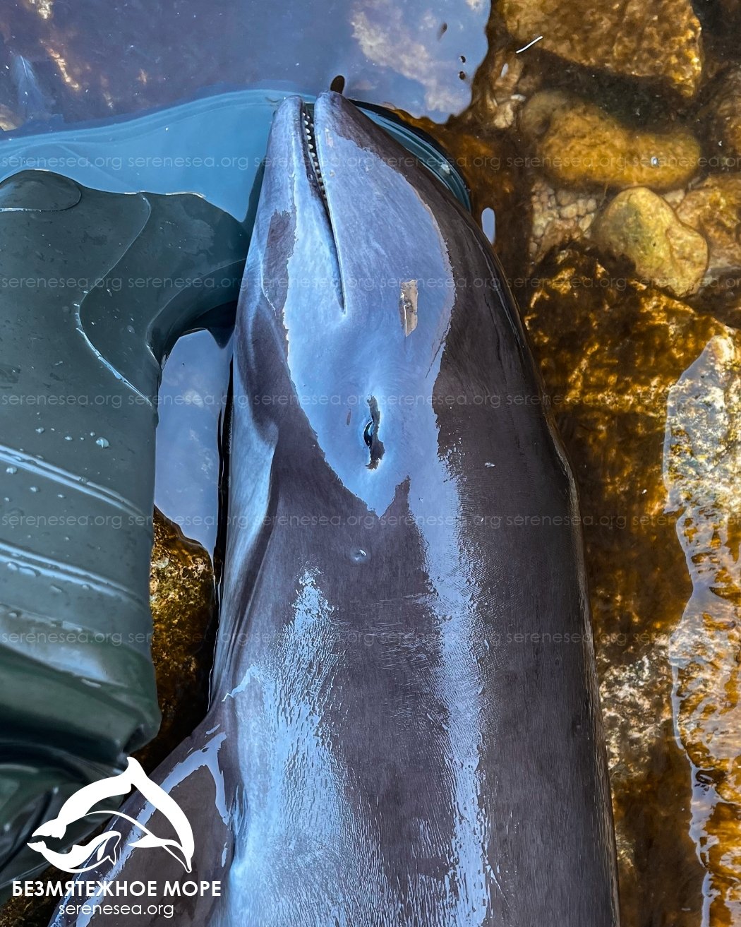 На минувшей неделе поступил вызов о живой морской свинье на пляже Парка Победы. Это была взрослая истощенная самка в крайне тяжелом состоянии: она еле передвигалась и лежала преимущественно на боку. К сожалению, животное умерло еще до приезда специалистов.