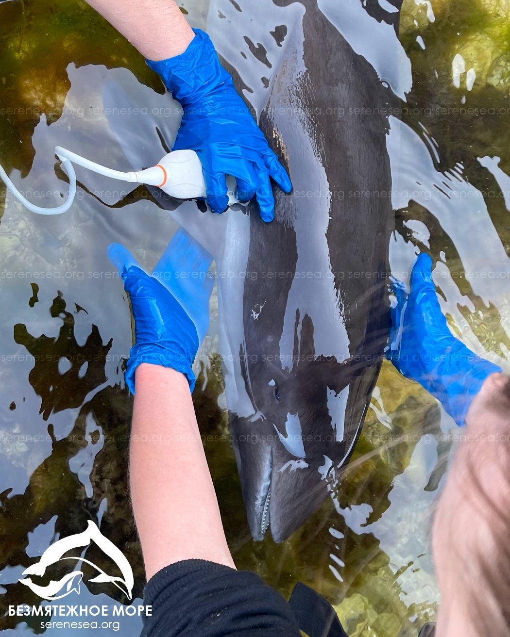 Ветеринарный врач Анна провела ультразвуковое исследование и выявила отек легких, а также серьезные проблемы с печенью: орган увеличился, в нем появились множественные гиперэхогенные очаги. Анализы крови подтвердили гепатопатию. Вероятно, болезнь печени и стала главной причиной выброса самки на берег. Были взяты все необходимые пробы.