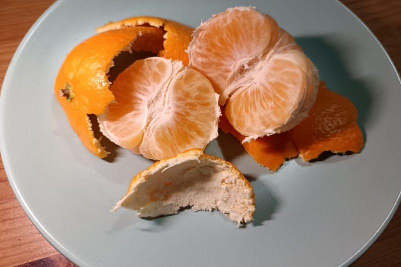 - Возьмите один спелый мандарин — кожура должна быть ярко-оранжевой, без пятен.