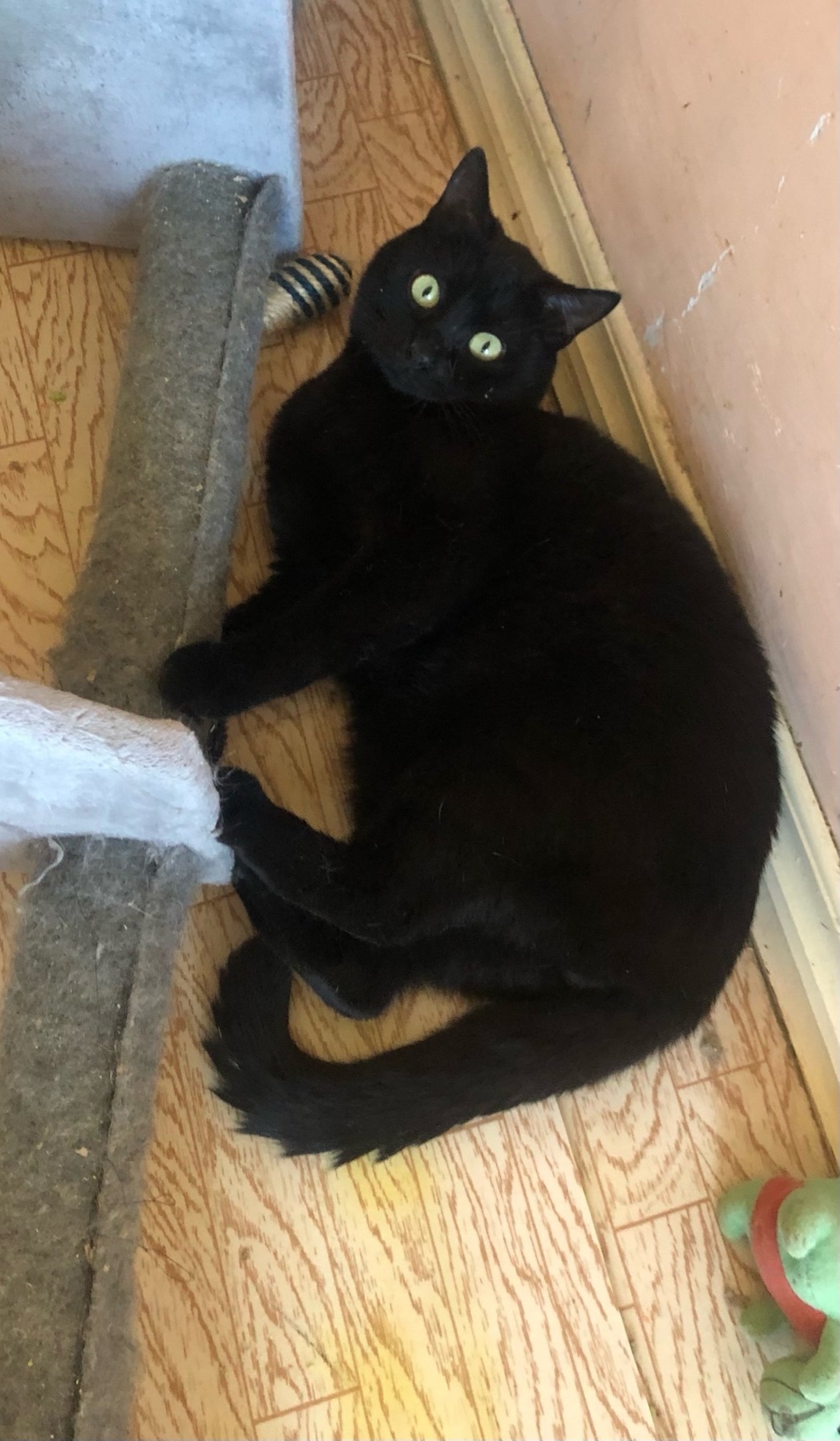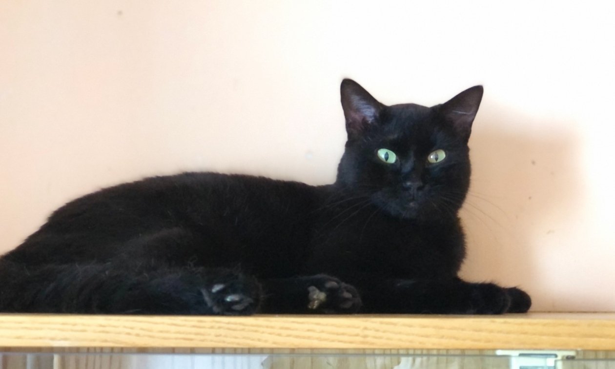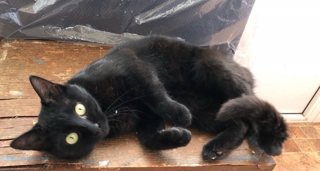 Черныша нашла на улице основатель центра Елена Воинова. Молоденький котик, примерно 1,5 лет чувствовал себя неважно: весь глаз заплыл. Его показали врачу, пролечили. Если чуть позже, то малыш мог бы остаться без глаза. Сейчас о проблеме уже ничего не напоминает. Котик освоил лоток и другие правила этикета. Он скромный, любит, когда его гладят.