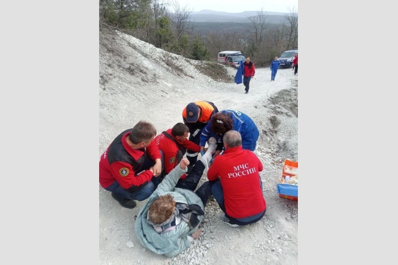 Чуть позже поступило сообщение о том, что другая женщина повредила ногу при спуске с грота Кыз-Кермен в Бахчисарае. Самостоятельно передвигаться они уже не могла. Спасатели наложили шину и на носилках принесли в карту скорой помощи.