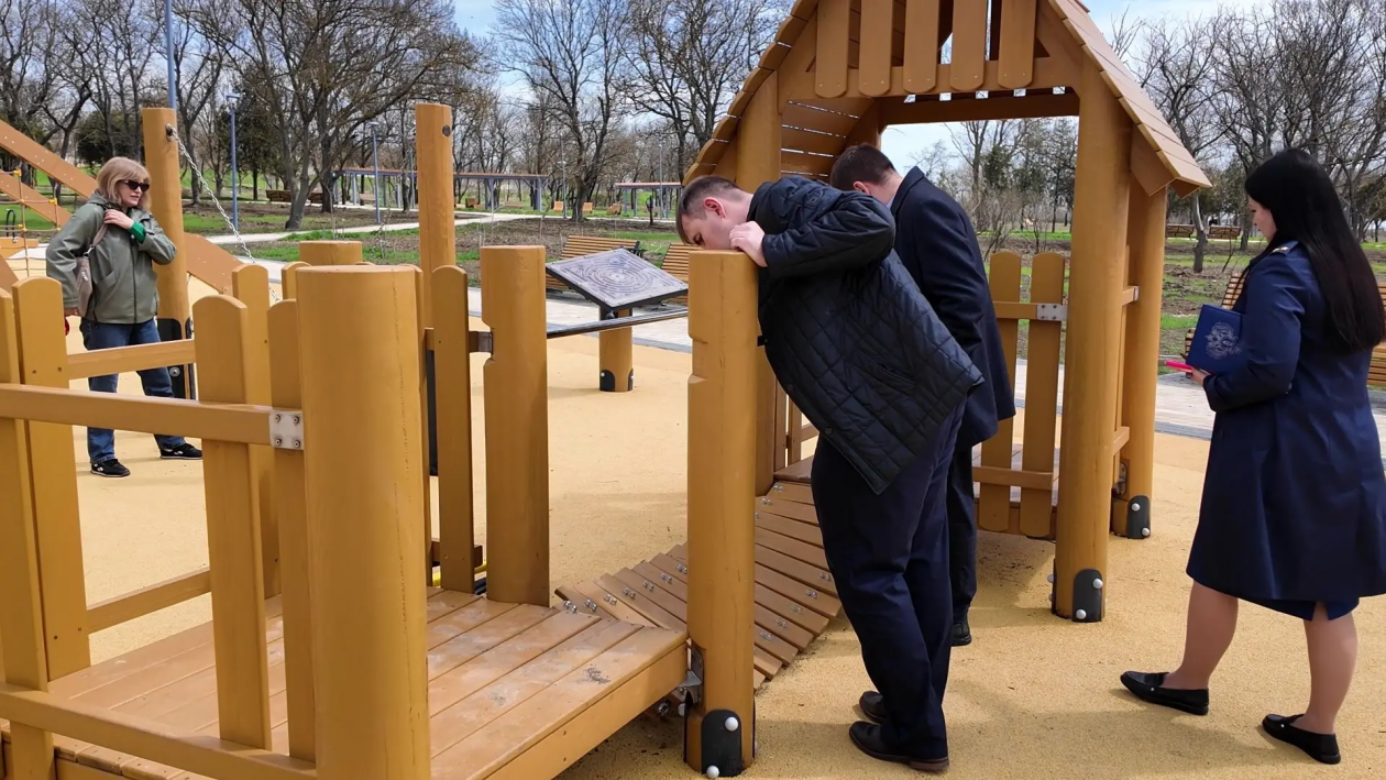 Местные власти уже внесли предписания подрядчику, часть качелей заменяют, по итогам выезда направят дополнительные сигналы: плитку на проблемных участках переложат, а детские горки и качели восстановят, также общественники рекомендовали проверить их сертификаты.