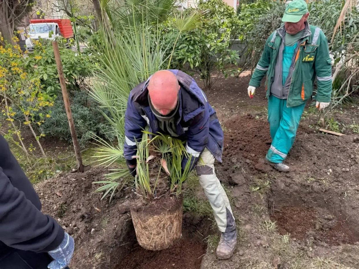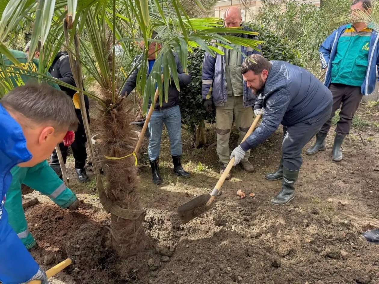 "На пальмовой аллее посадили трахикарпус, финиковую пальму и бутию. У входа, у арки, гостей сквера уже встречает небольшая оливковая роща. Сейчас специалисты "Зеленстроя" работают над живой изгородью из тиса, высаживают жимолость, калину, лавровишню, розмарин", — перечислил Сергей Олефиренко.