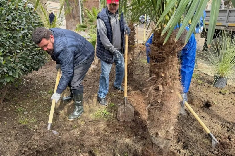 "На пальмовой аллее посадили трахикарпус, финиковую пальму и бутию. У входа, у арки, гостей сквера уже встречает небольшая оливковая роща. Сейчас специалисты "Зеленстроя" работают над живой изгородью из тиса, высаживают жимолость, калину, лавровишню, розмарин", — перечислил Сергей Олефиренко.