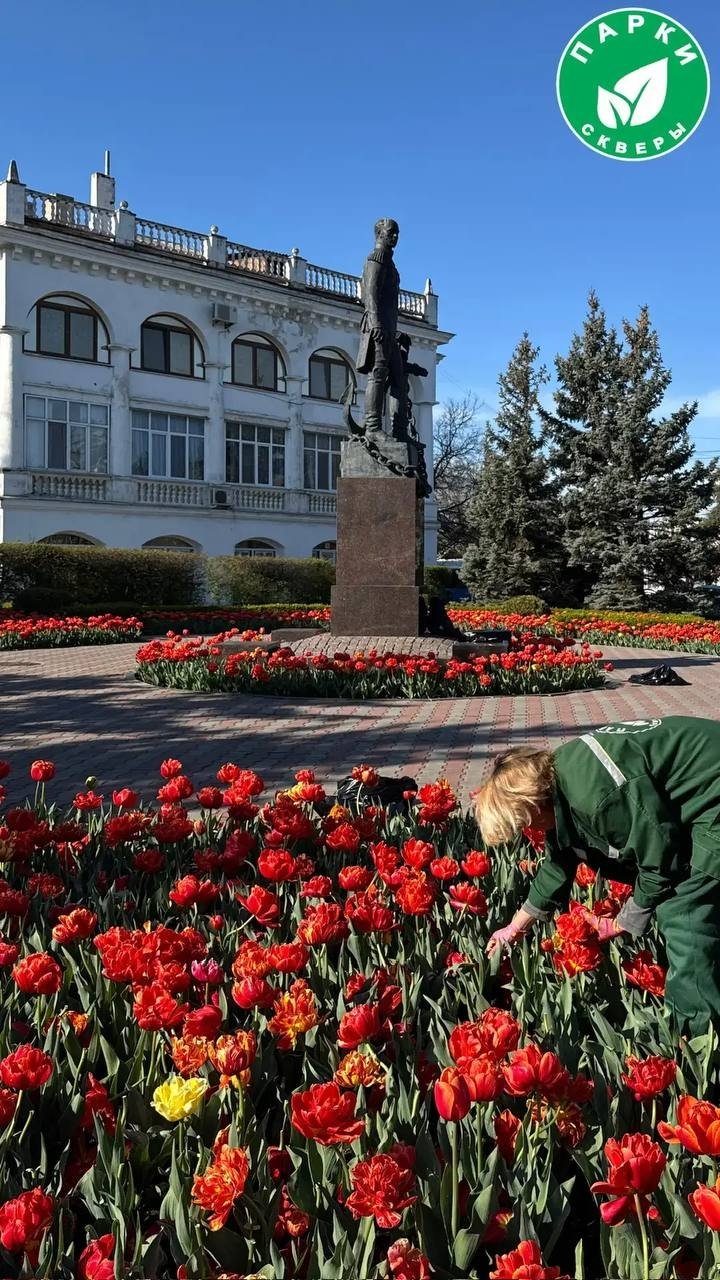 В соцсетях "Парков и скверов" сообщили, из-за ливней и ветра на прошлой неделе пострадали тюльпаны возле памятника Сенявину. Под тяжестью влаги многие бутоны обломались и потеряли декоративный вид. Поврежденные цветы убирают.