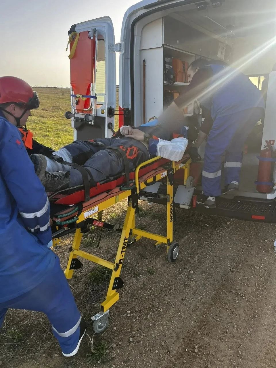 Спустившиеся к пострадавшему спасатели оказали первую помощь, наложив шины и воротник Шанца. Потом они доставили мужчину к медикам на спецносилках.