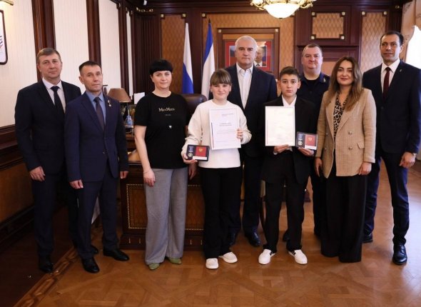SevastopolMedia, 6 ноября. Медаль Совета Федерации РФ "За проявленное мужество" вручили юным гражданам республики глава Крыма Сергей Аксенов и первый зампред Госсовета РК Андрей Козырев. Они поблагодарили школьников за их неравнодушие и смелость.