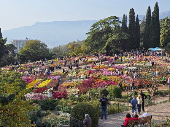 SevastopolMedia, 16 ноября. Бал хризантем "Осеннее танго" (0+) до конца ноября продолжит радовать жителей и гостей полуострова яркими красками в Никитском ботаническом саду, сообщает ИА SevastopolMedia. Почти 40 тысяч цветов высажены на главной выставочной поляне Верхнего парка.