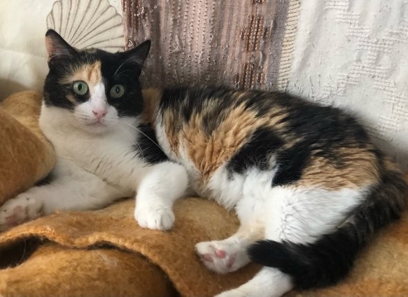 Ищет семью и красотка Триша с непростой судьбой. Она попала в центр очень худенькой, с разрывом диафрагмы — кто-то ее ударил ее. Прооперировали, выходили и вот — какая кругленькая, мягенькая, уютная кошечка получилась. Триша — ненавязчивая скромняга по характеру, предпочитает вести наблюдение из своей лежаночки. Но дома будет приходить и мурлыкать, греть хозяевам "бочок". Нужно только время на привыкание.