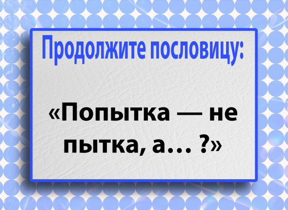 Этот народный афоризм напоминает: не стоит бояться задавать вопросы и предпринимать попытки — только так можно достичь желаемого результата. Если вы вспомнили правильный вариант, вы, безусловно, обладаете пытливым умом!