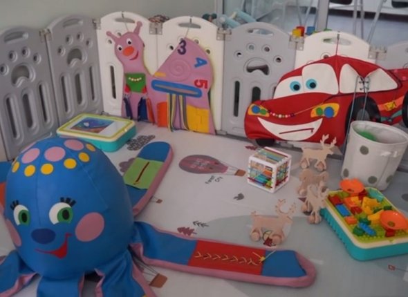 Для комфортного пребывания малышей создали все условия: установлено специальное оборудование, закуплены развивающие игрушки. Питание готовят и подают в соответствии с возрастом каждого ребенка.