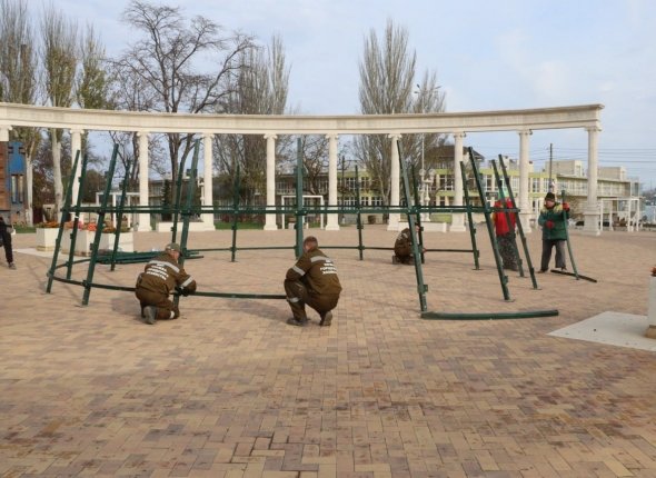 "В первую очередь собирают металлический каркас конструкции, затем его "оденут" в искусственную хвою и украсят шарами и гирляндами", — рассказал градоначальник.
