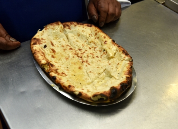 После этого растяните тесто руками, формируя лепешку. По желанию можно смазать ее чесноком. Выпекайте лепешку в течение 15 минут при температуре 200 °C.