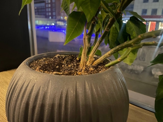 Нужно воткнуть 5-6 спичек в землю вокруг растения, а именно серой вниз. Сера, когда будет растворяться в грунте, создаст для мошек невыносимые условия. Через 3-5 дней насекомые покидают горшок.