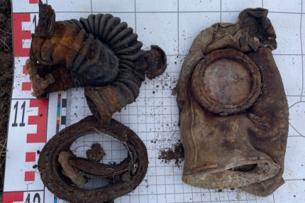 "Боец находился недалеко от пляжа, где местные жители любят отдыхать летом. Он лежал на глубине 60-70 см, в горизонтальном положении, лицом вверх. Состояние скелета показало, что видимых и значимых повреждений на нем не было, возможно это было осколочное или огнестрельное ранение. Воин погиб не сразу, об этом говорит положенный под голову подсумок с противогазом, пустой котелок у правой руки и стеклянная ампула, которая могла использоваться как обезболивающее", — рассказал подробности в своем аккаунте в "Вконтакте" командир отряда Виктор Густой.