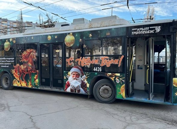 SevastopolMedia, 26 декабря. Новогодние троллейбусы вышли на улицы городов Крыма, сообщили в минтрансе республики. Ярко украшенные гирляндами и елочными игрушками они будут курсировать с 26 декабря и до конца рождественских праздников, даря позитив пассажирам.