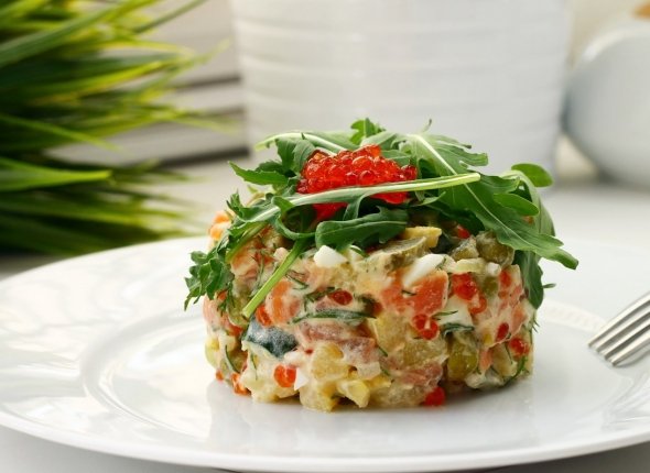 Сегодня салат "Киевский" считается классикой русской кухни и нередко украшает праздничные столы. У него существует множество вариаций, а каждый шеф-повар вправе вносить свои изменения в состав ингредиентов по собственному усмотрению.