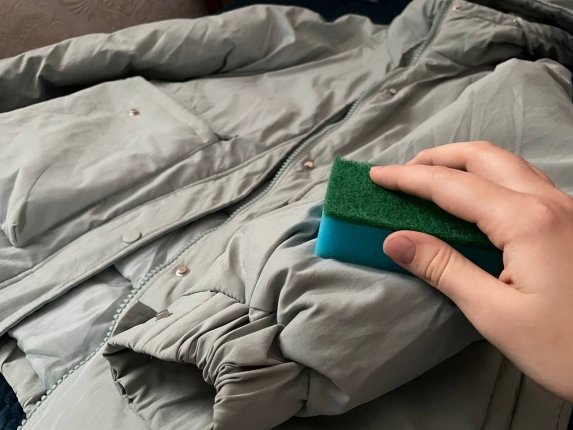 Во-вторых, перед стиркой важно обработать пятна и загрязненные участки жидким пятновыводителем с энзимами и подождать 15 минут. Затем протереть их губкой и отправить пуховик в стиральную машину. Стирать куртку важно не менее 1 часа.