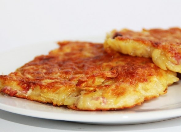 4. На разогретую сковороду налейте масло, затем выложите 2 столовые ложки кабачкового теста. Верхняя часть заготовки должна схватиться.