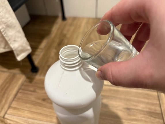 Удобнее всего готовить его в бутылке с распылителем — так и экономнее, и проще в использовании. Но если пульверизатора под рукой нет, можно смешать всё в обычной банке или миске.
