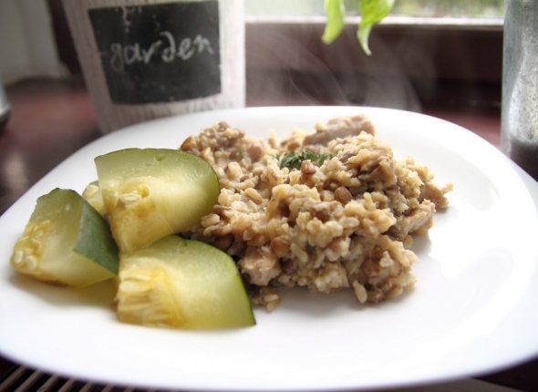 1. Крупу поместите в кастрюлю с толстым дном, добавьте 300 мл воды, посолите и варите до готовности.